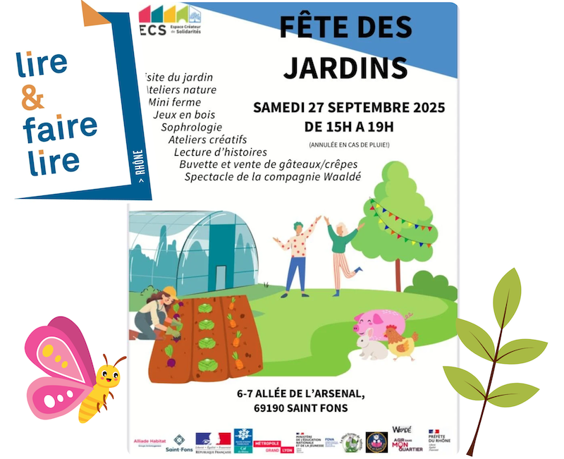 Le samedi 27 septembre, LFL69 était présente à la Fête des Jardins de Saint-Fons. Sous un magnifique soleil, 30 à 40 enfants ont profité des lectures proposées, accompagnés de plusieurs mamans curieuses et enthousiastes.