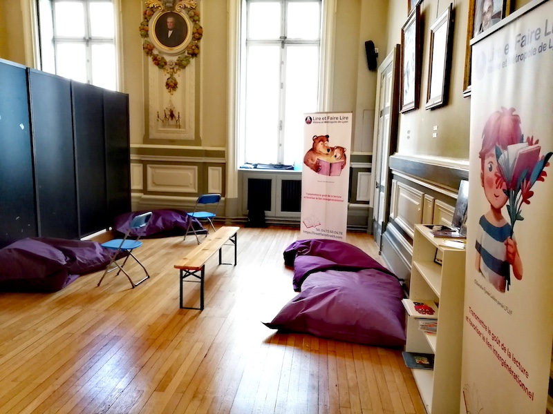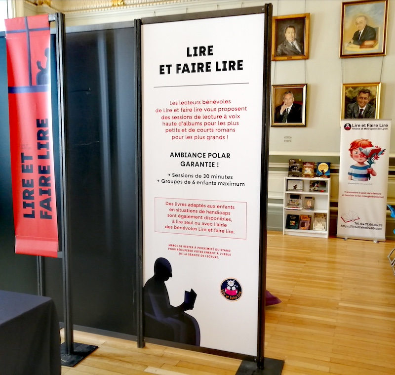 Charles lance un appel à toutes celles et ceux qui voudraient le rejoindre pour créer une véritable équipe évènements. Trois personnes seraient nécessaires par festival. « Cette équipe, insiste Charles permettrait de pérenniser les partenariats aux bénéfices des bénévoles et des enfants. On se projette aussi sur l’après. Pourquoi ne pas s’investir dans d’autres évènements mais il faut des ressources « . Pas question que ces trios travaillent dans la précipitation. « Ils s’engageraient dans la durée, avec une rencontre tous les trois, quatre mois. Un investissement plus important est indispensable deux mois précédent l’évènement pour rencontrer les organisateurs des festivals : tisser des liens avec l’équipe communication de LFL69 : sélectionner des livres en fonction du thème choisi avec les les bibliothécaires et les libraires : recruter de bénévoles, installer le stand, etc. Pendant le festival, il faut prévoir une présence alternée de chaque membre du trio pour accueillir les lecteurs(trices), pour communiquer auprès des visiteurs et pour celles et ceux qui le souhaitent lire. Le tout dans une ambiance très conviviale ».