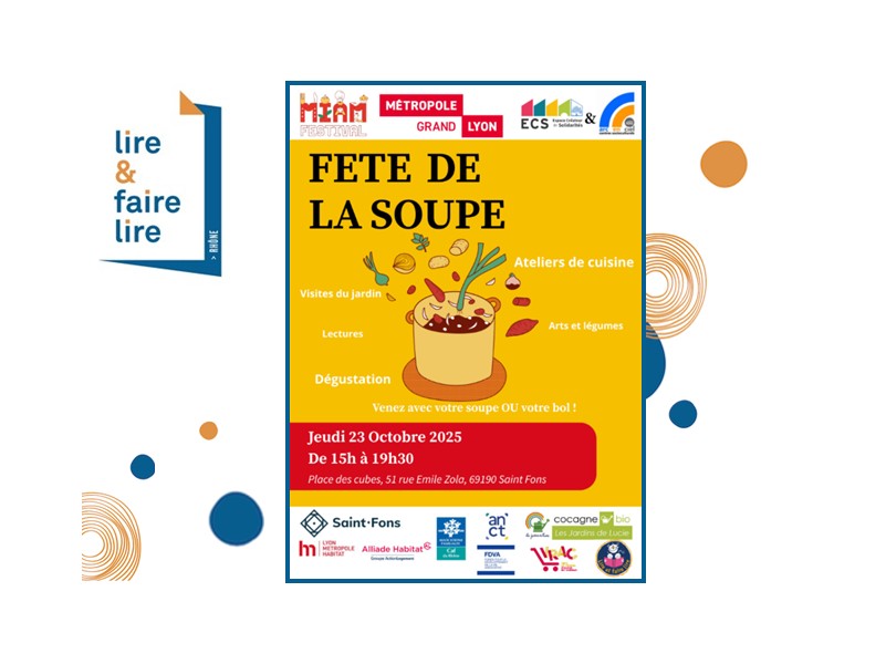 « La fête de la soupe a bien eu lieu malgré le grand vent mais elle a été décalée de 15H 30 à 17H30. Nous sommes restées jusqu’à 18H30 car les enfants continuaient à demander des livres. Françoise et moi avons été très bien accueillies, comme toujours, avec un espace dédié, préparé pour nous, au calme.
