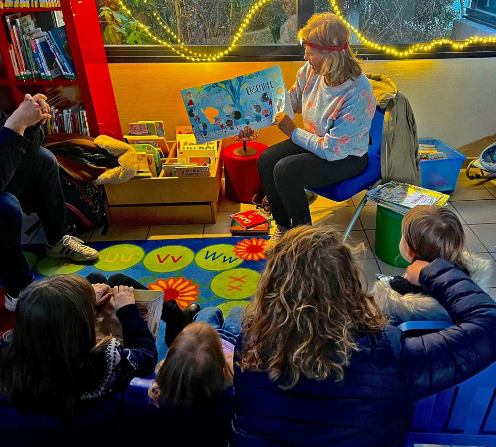 25 enfants de 2 à 10 ans environ sont venus les écouter. Une belle soirée de lectures !