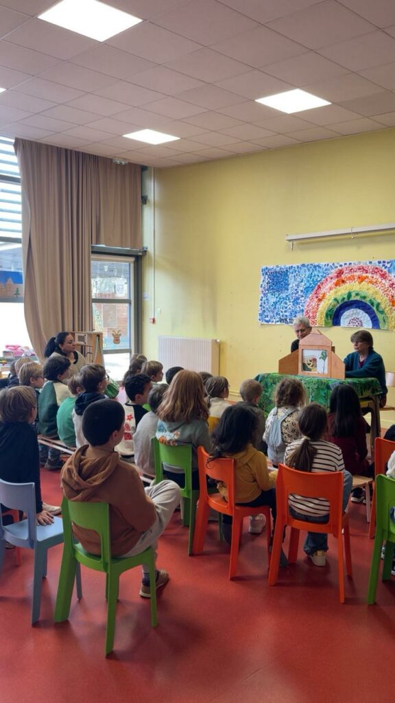 Les classes de CP de l’école Fournion à Brignais ont pu bénéficier d’une séance de lecture avec kamishibai offerte par Lydia et Alain, bénévoles LFL69.