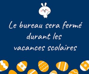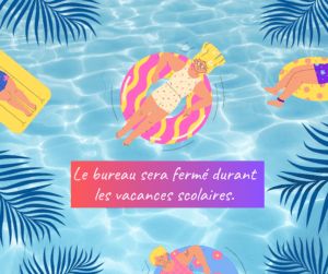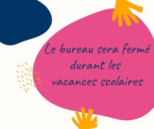 Le bureau sera fermé durant les vacances scolaires. Date de réouverture : le 28 août. Bon été à toutes et à tous !
