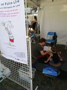Animation d’un «coin lecture» lors de la kermesse à Lyon 8ème